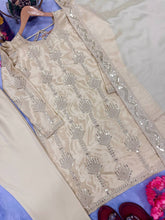 Designer Party Wear Collection, crafted from Heavy Pure Chinon Silk with intricate embroidery and 5mm sequins work for a luxurious touch. This stunning ensemble is perfect for any grand occasion, offering a blend of elegance and comfort.