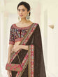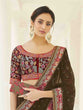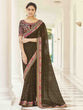 Olive Organza Embroidered Saree With Unstitched Blouse