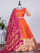 Orange Color Weaving Zari Work Jacquard Paithani Lehenga Choli
