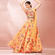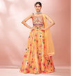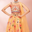 Designed with simplicity with a touch of soberness in its work makes a masterpiece by wearing this orange colored lehenga choli. This lehenga choli is beautified with floral printed, sequins and mirror work as shown which is eye catching. This organza lehenga comes along with art silk blouse and net dupatta with tassels to complete the look. Women can buy this lehenga choli to wear for their parties and functions. Team it with stylish accessories to make your looks more beautiful. This attractive suit will surely fetch you compliments for your rich sense of style.