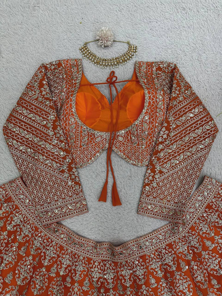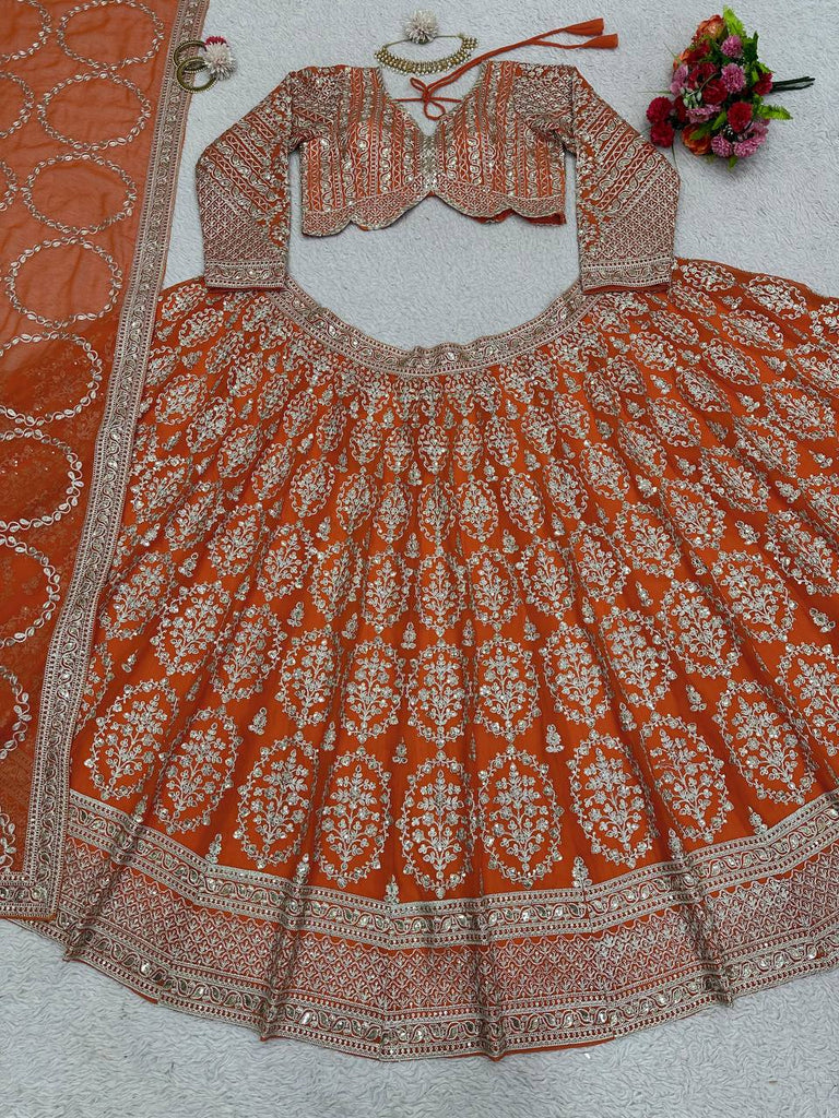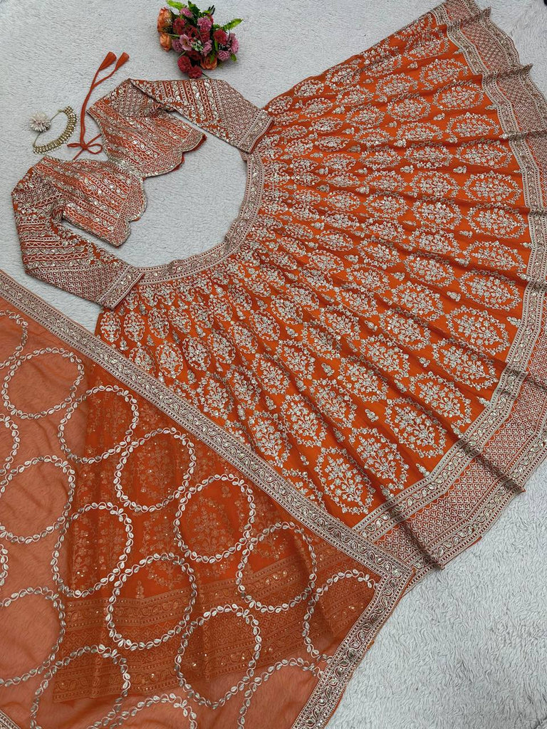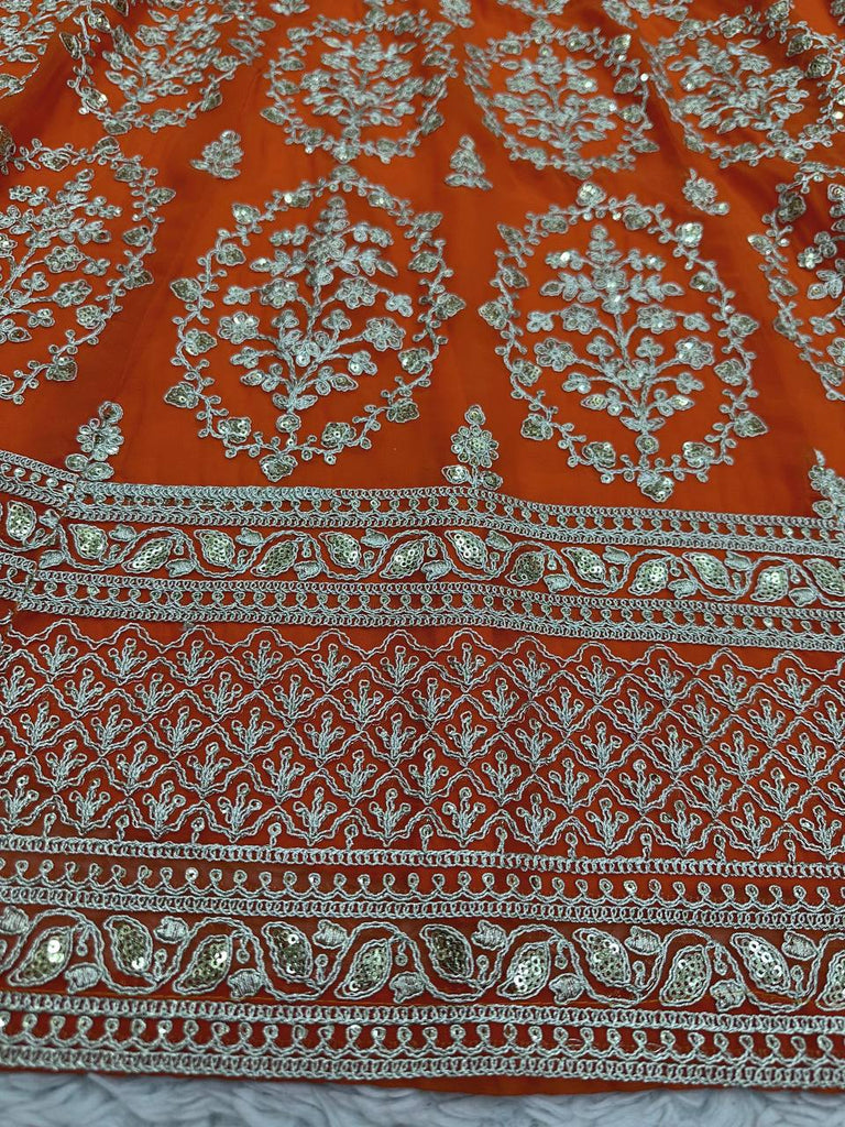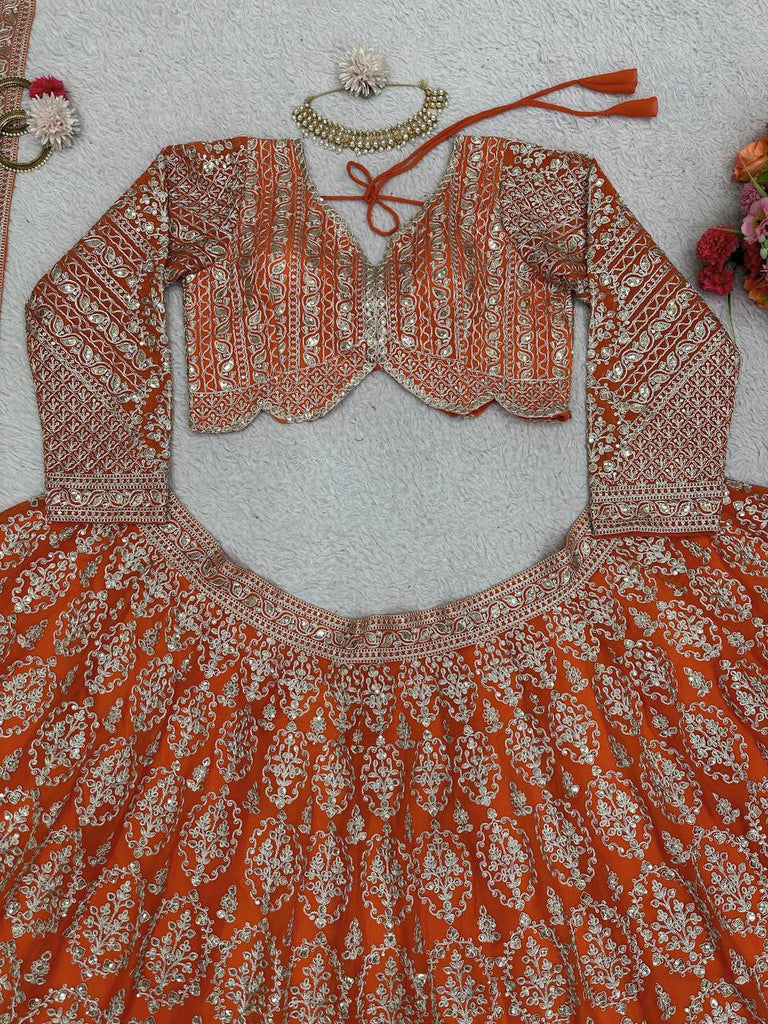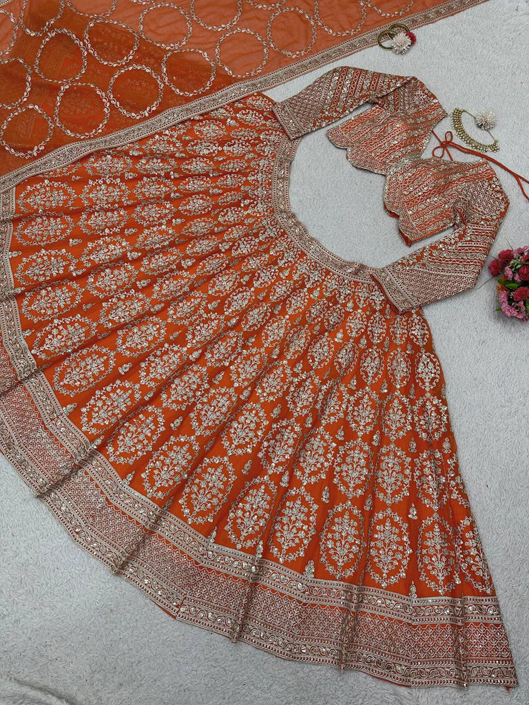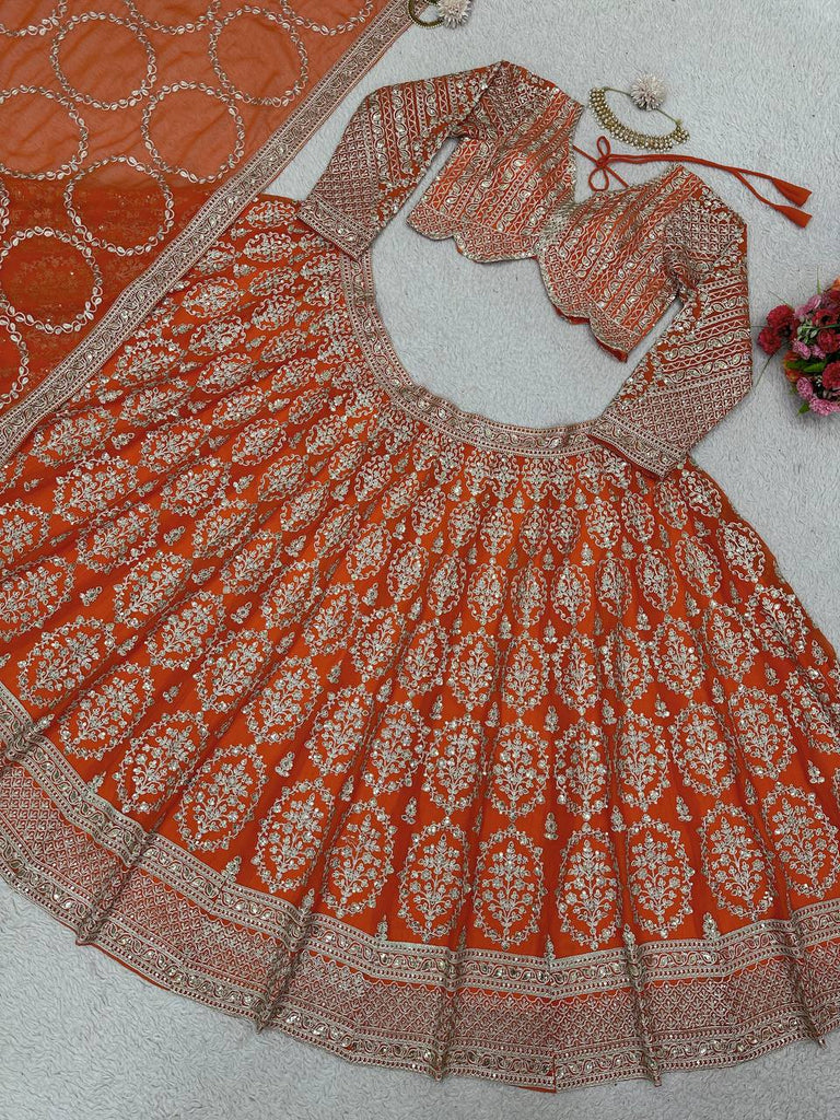 Orange Faux Georgette Semi-Stitched Lehenga Set with Coding Dori & Sequin Work