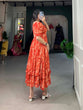 A riot of colors and captivating floral prints adorns the frock, making it a true statement piece. The vibrant blooms are sure to turn heads wherever you go, while the elegant design exudes effortless sophistication.