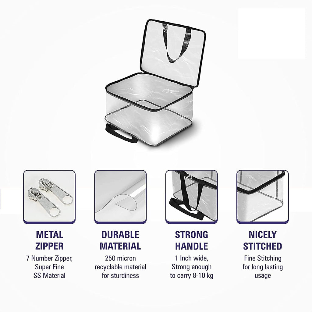 Declutter your wardrobe and maximize your storage space with our Transparent PVC Storage Organizer Bag—a smart and stylish way to store sarees, lehengas, blankets, clothes, bedsheets, toys, and more.
