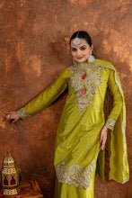 Premium Designer Readymade Set, crafted from luxurious heavy Chinon silk and adorned with exquisite 3mm sequin embroidery & coding dori work. Designed for a glamorous party look, this ensemble blends traditional artistry with contemporary style, ensuring a regal and graceful appeal.
