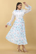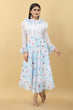 The dress features a unique digital print, adding an extra touch of elegance and sophistication. The combination of white and sky colors creates a beautiful and coordinated look that is perfect for any party or special occasion.