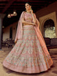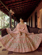 Peach Embroidered Georgette Semi Stitched Lehenga With Unstitched Blouse