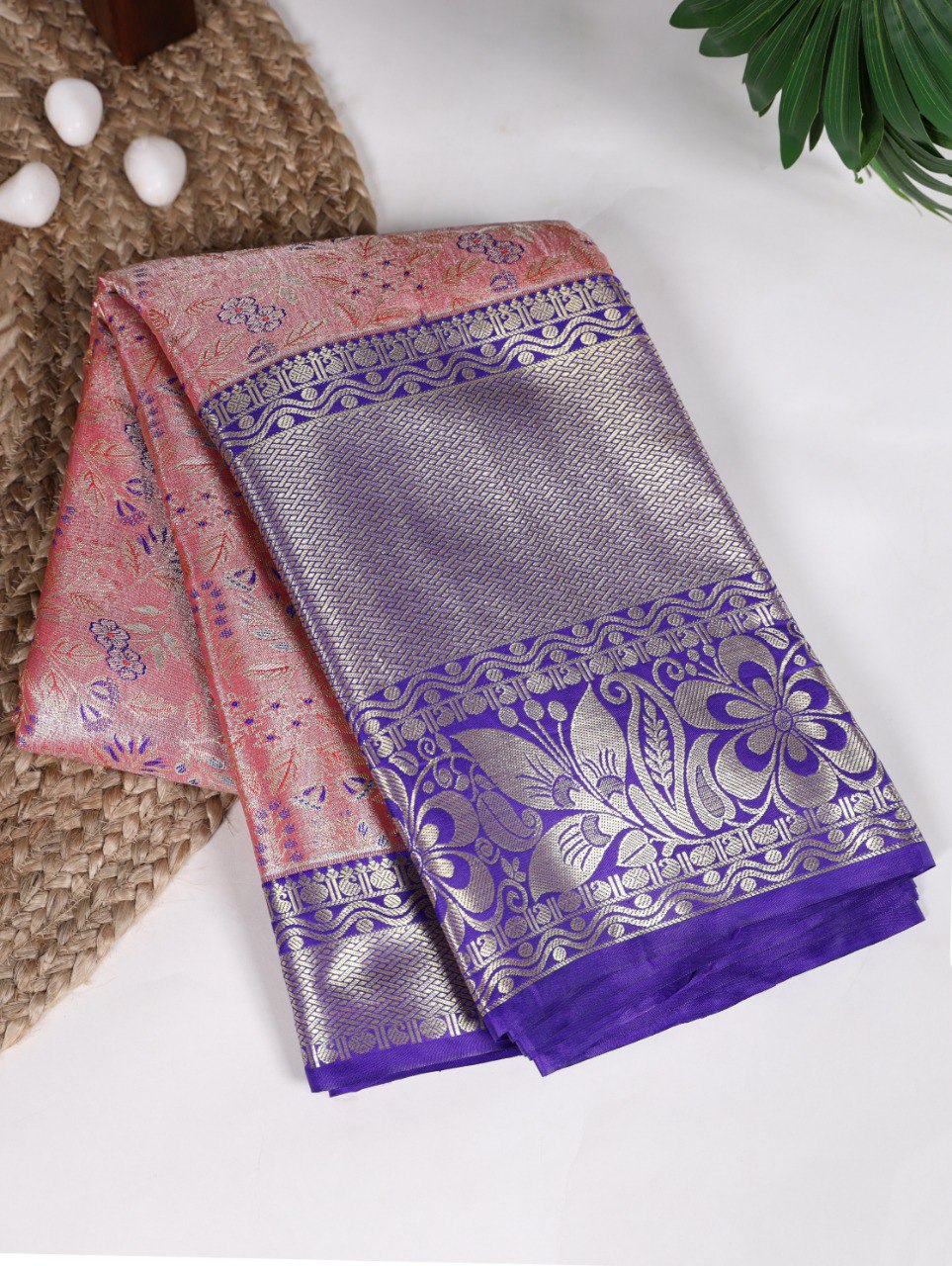 Jacquard Silk Saree Collection, featuring intricate handcrafted Zari weaving that adds a touch of luxury to your wardrobe. This stunning saree is crafted from premium Jacquard silk, known for its rich texture and durability.