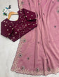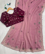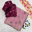 The intricate embroidery enhances the beauty of the saree, while the unique contrast thread work brings a modern twist to traditional craftsmanship. The eye-catching aarco border adds an extra layer of sophistication, ensuring that this saree stands out in any setting.