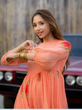 Peach Kota Checks Digital Print Kurti with Full Flair