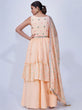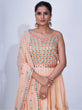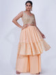 Peach Mirror Work Multi Embroidery Chiffon Palazzo Suit