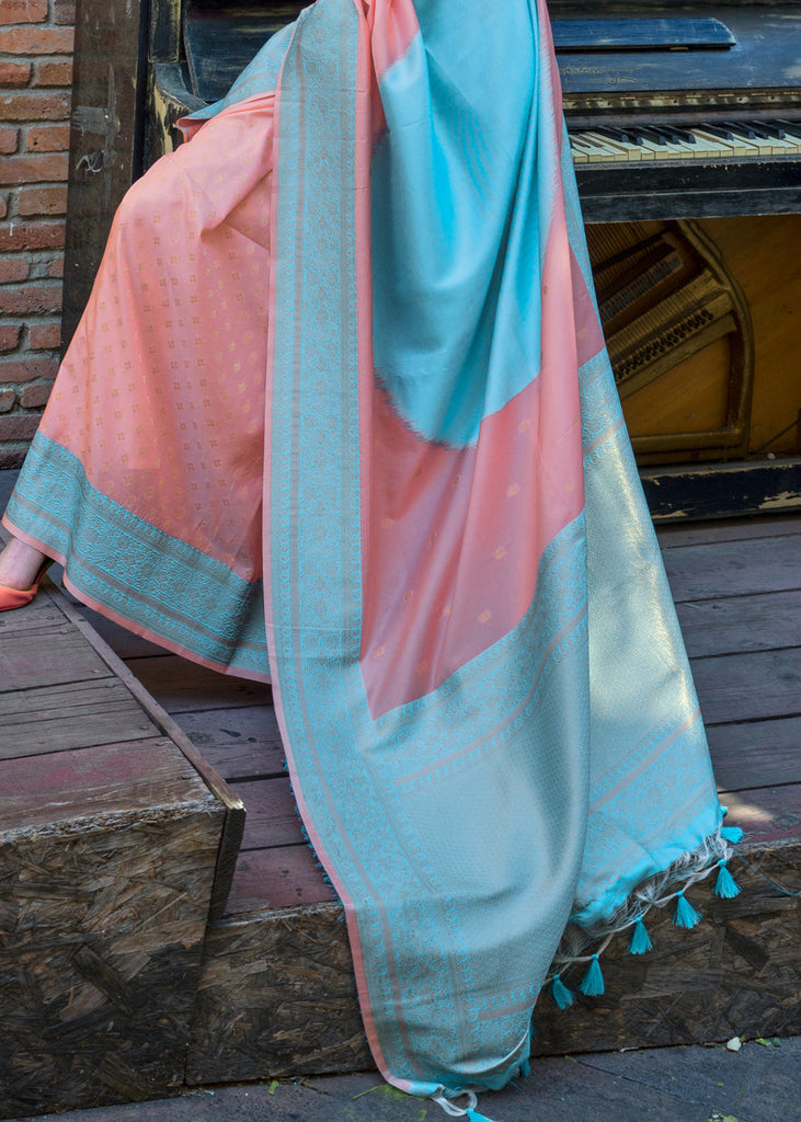 Peach Regal Banarasi Soft Silk Saree with Intricate Timeless Design & Blouse Piece