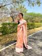 Introducing our stunning Peach Saree, crafted from soft and luxurious Organza Silk. This saree features intricate Lucknowi Thread Chikankari Work in the Pallu, adding a touch of elegance and sophistication to the overall design. The multicolor work viscose border adds a pop of color and vibrancy to the saree, making it perfect for any occasion. To complete the look, this saree comes paired with a beautiful Banglori Blouse, adding a modern twist to the traditional design. Perfect for weddings, parties, or any special occasion, this Peach Saree is sure to turn heads and make you feel like a true fashionista. Don't miss out on this must-have addition to your wardrobe!
