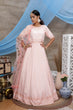 Peach Thread Embroidery Georgette Anarkali Long Gown Semi Stitched
