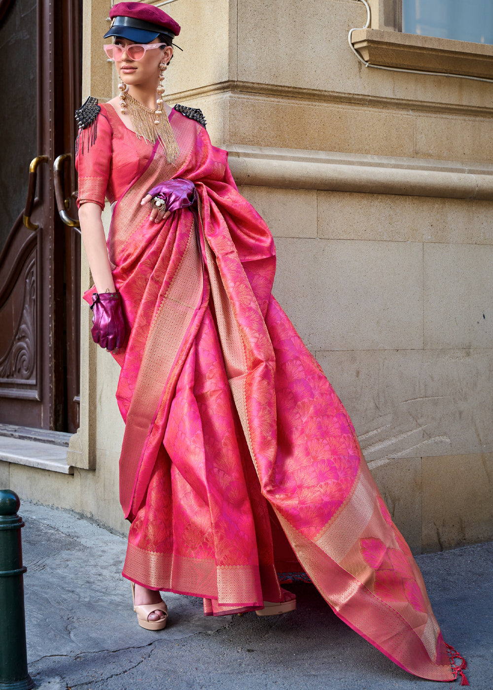 Pink Ethereal Organza Silk Saree – Graceful & Glamorous Drape