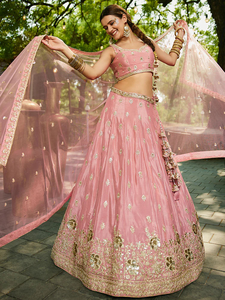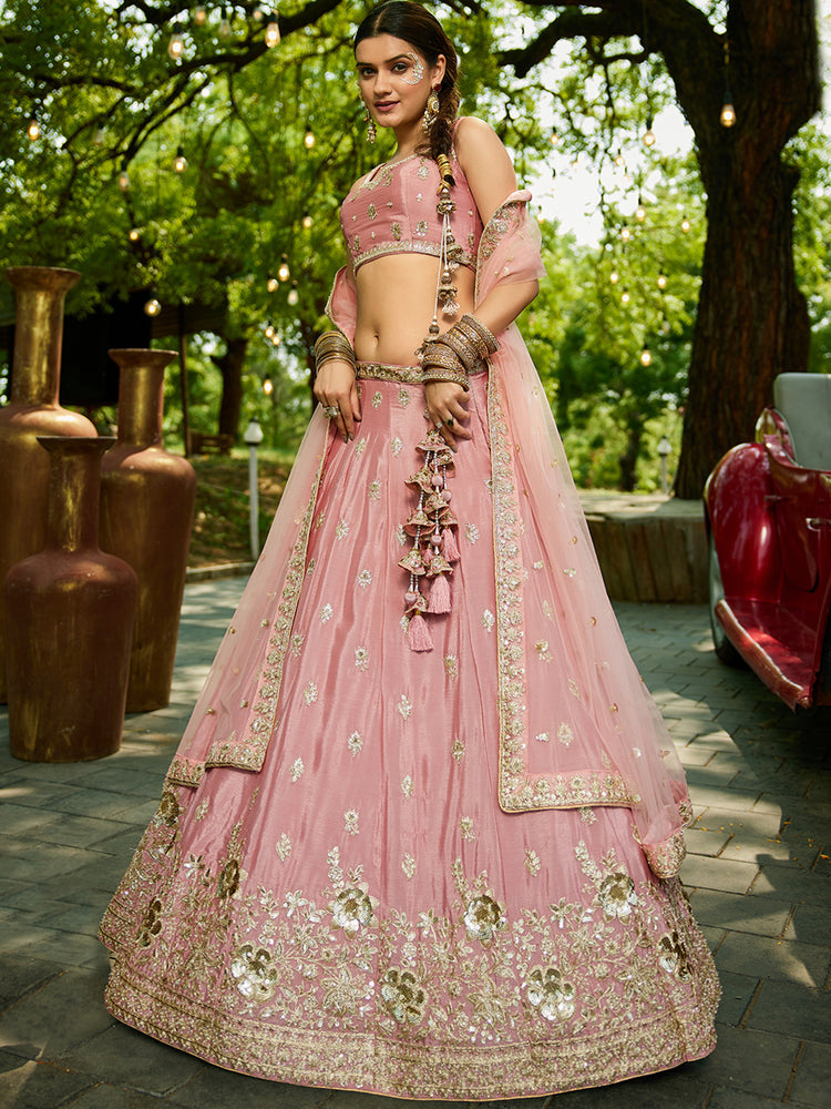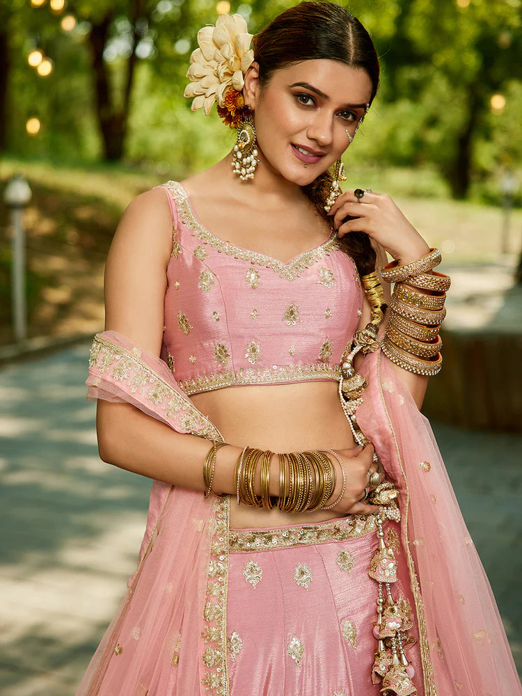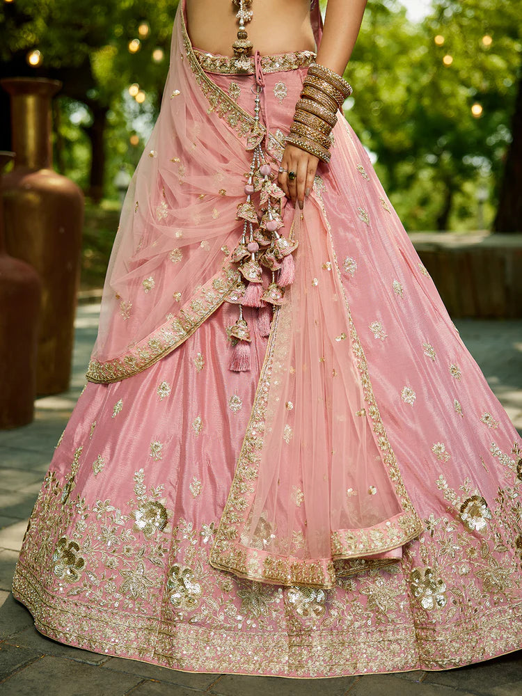 Pink Chiffon Semi-Stitched Lehenga Choli Set with Heavy Sequin & Embroidery
