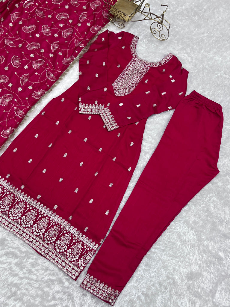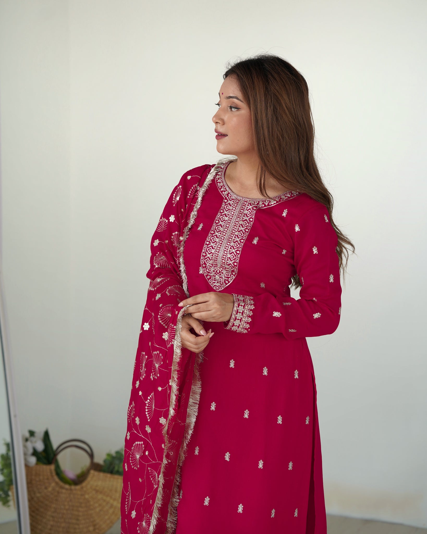 Pink Elegant Pure Blooming Vichitra Silk Kurta with Dupatta Set & Trousers – Ready to Wear