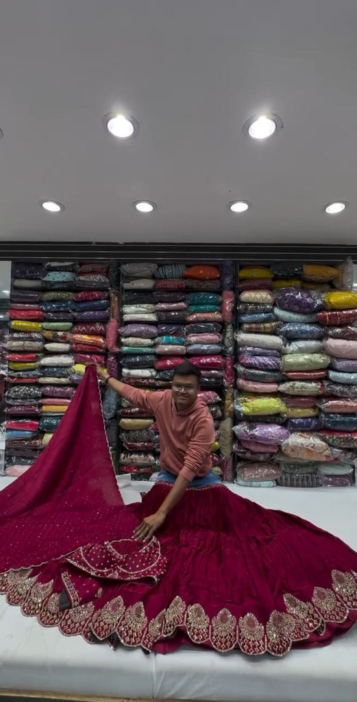 his stunning satin lehenga set! Crafted from luxurious satin fabric, this ensemble combines elegance and comfort for a truly regal look.