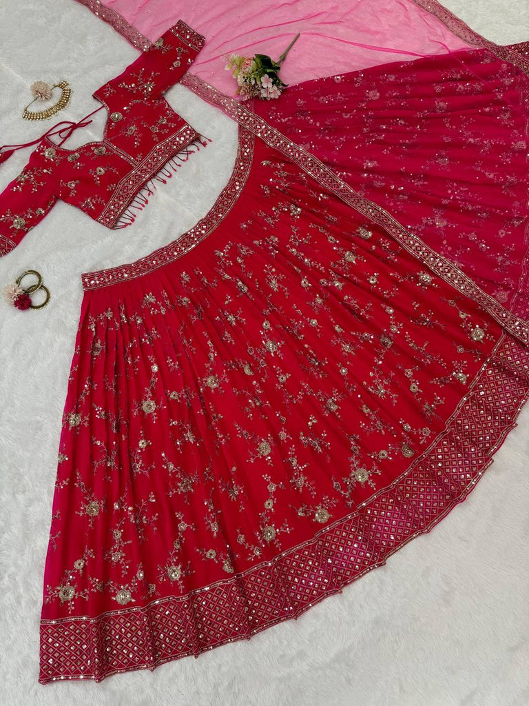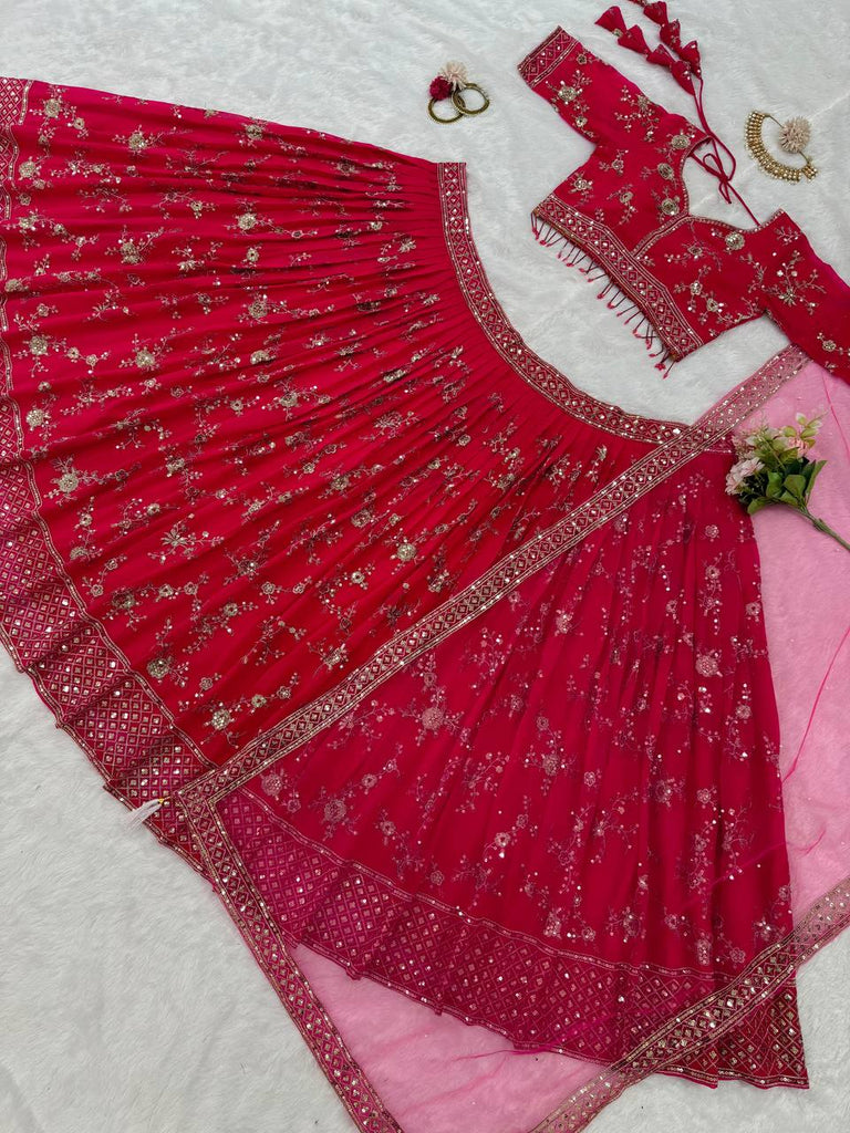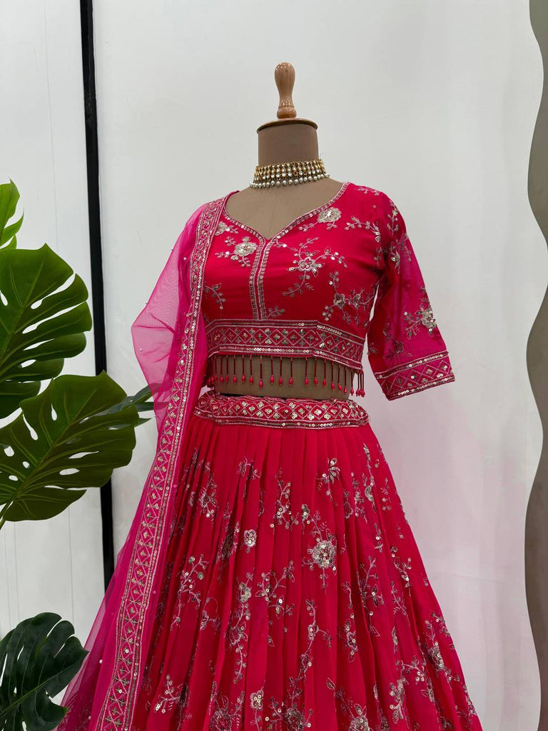 Pink Faux Georgette Thread & Sequin Embroidered Lehenga Choli Set with Fancy Dupatta