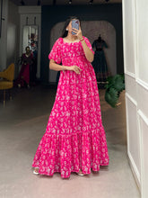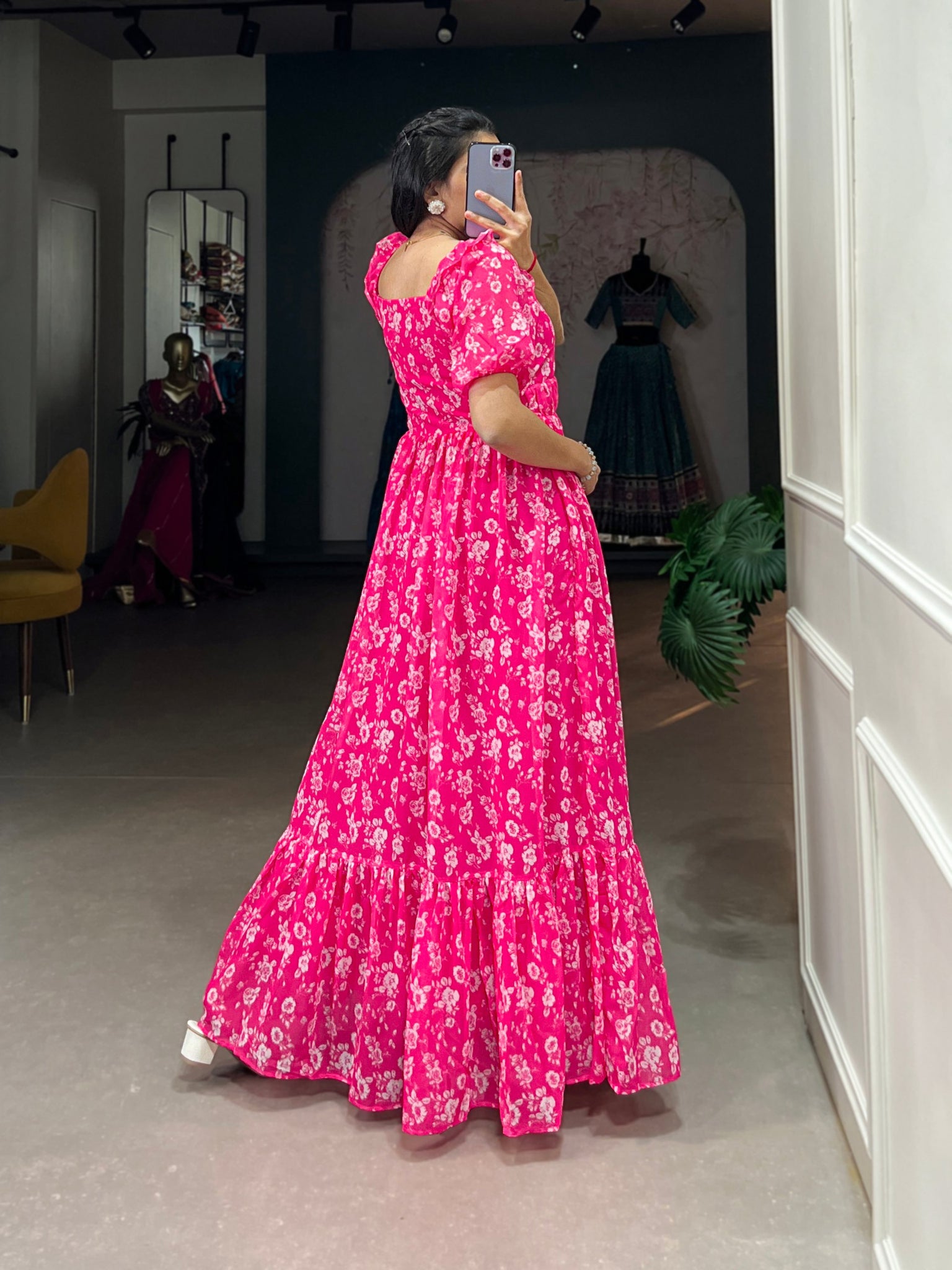Pink Floral Printed Georgette Gown – Elegant and Timeless Charm