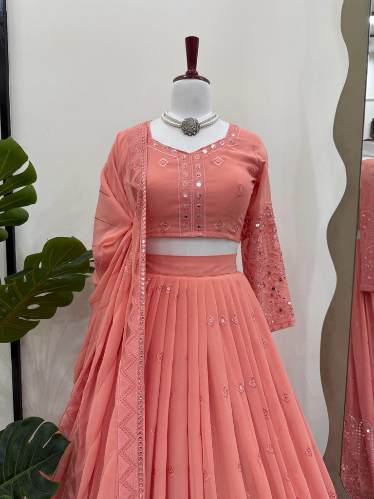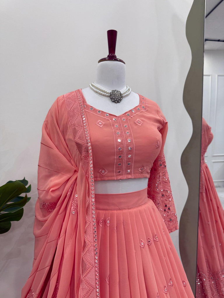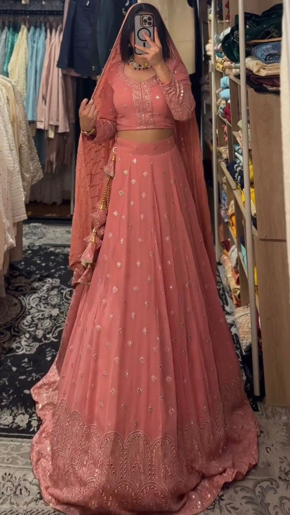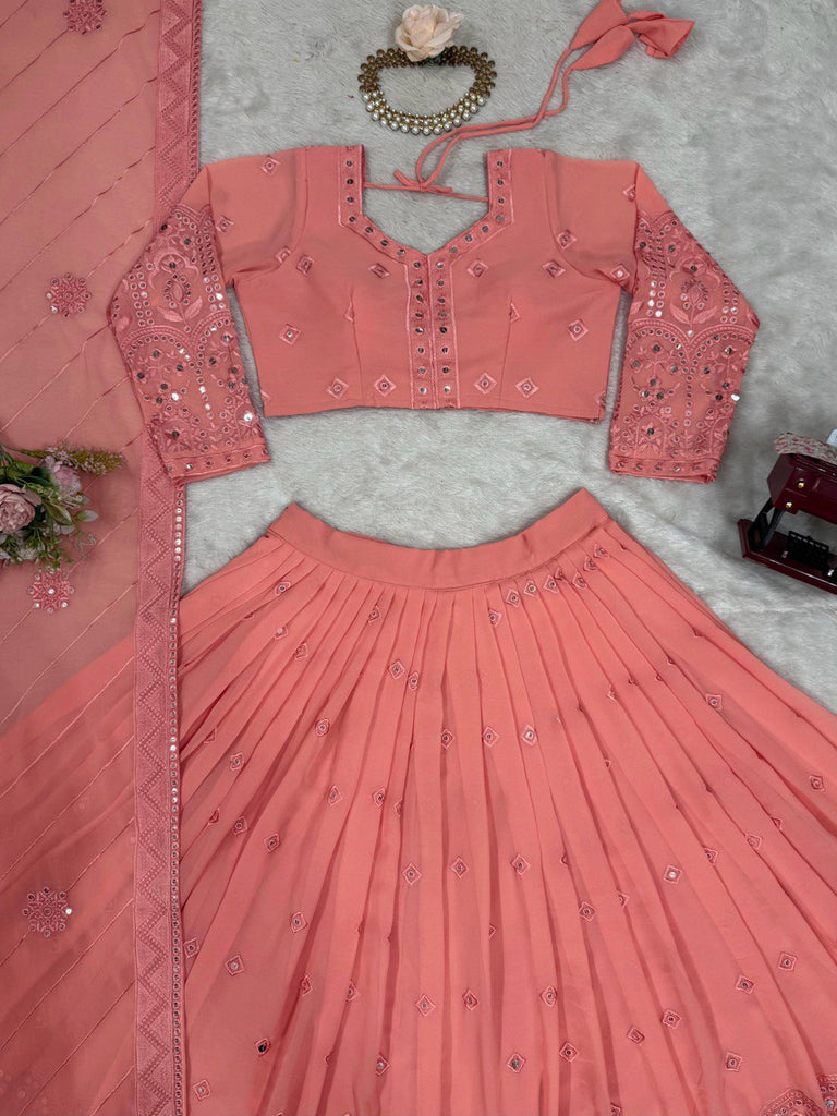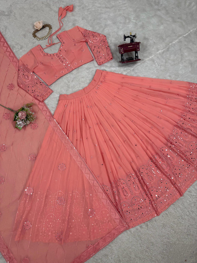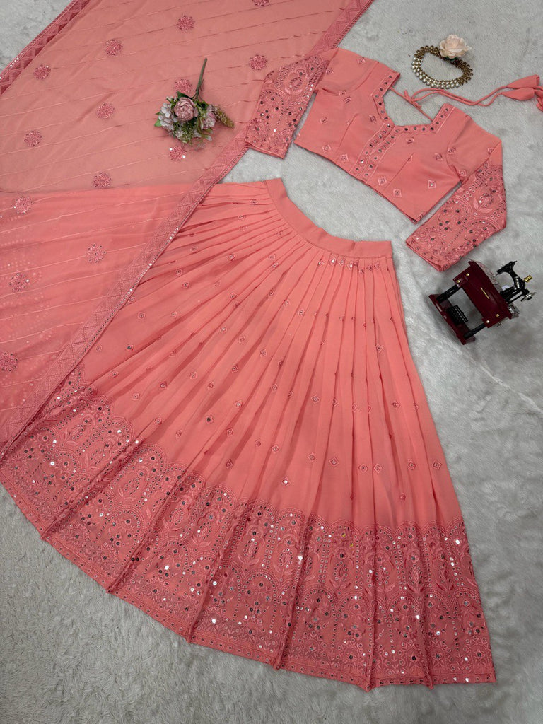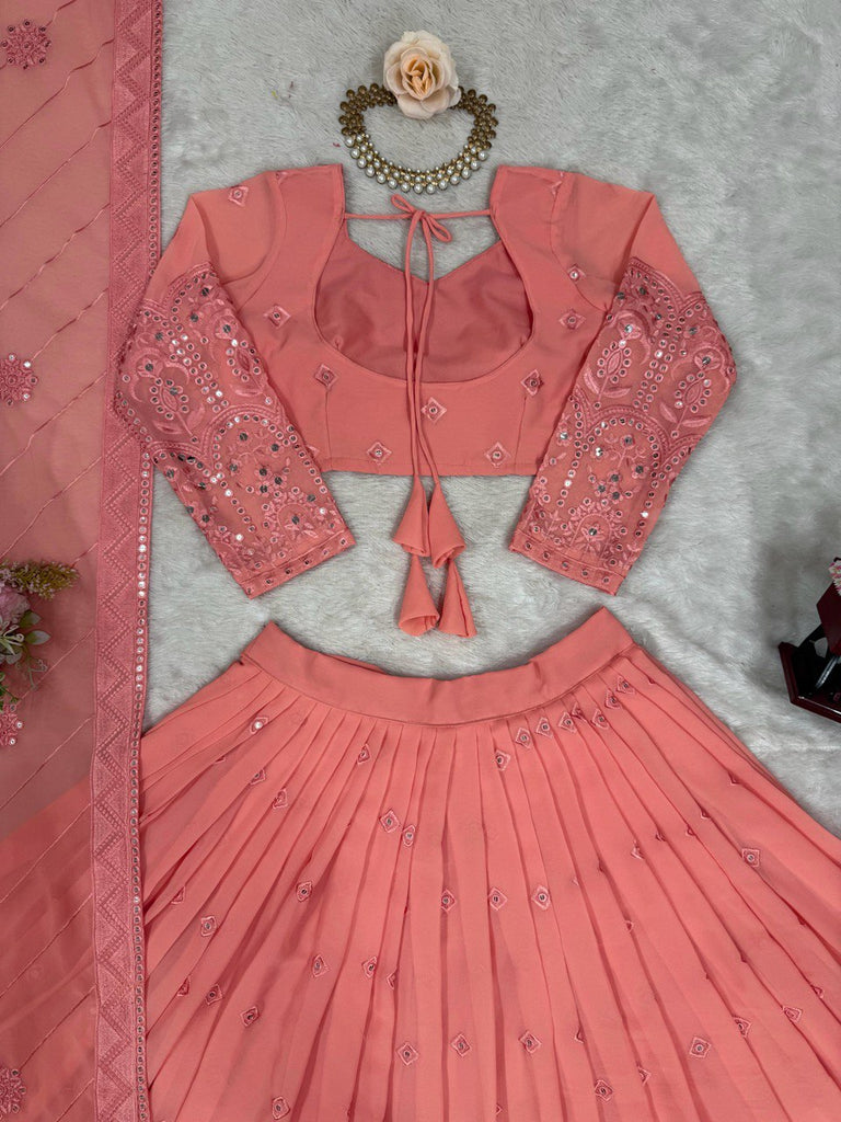 Pink Glamorous Faux Georgette Lehenga Choli Set with Sequin Embroidery & Dupatta