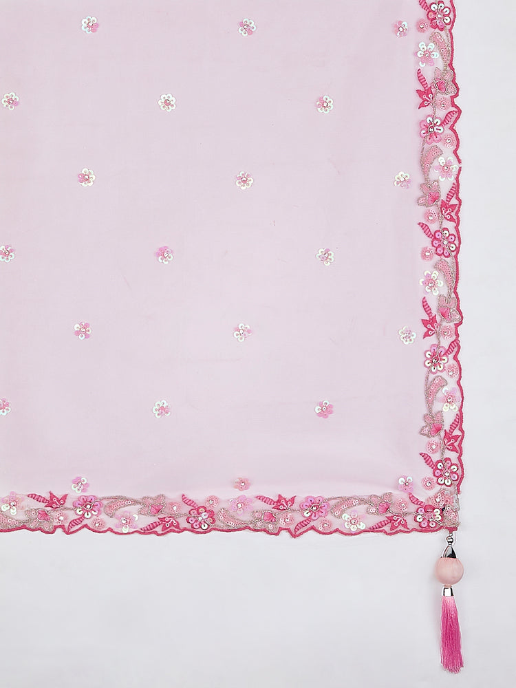 Dupatta: Pink Net with Sequins Ethnic Motif & Embroidery Border