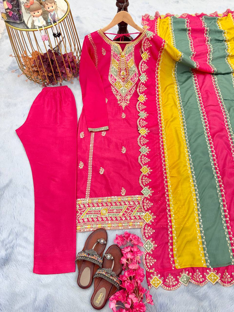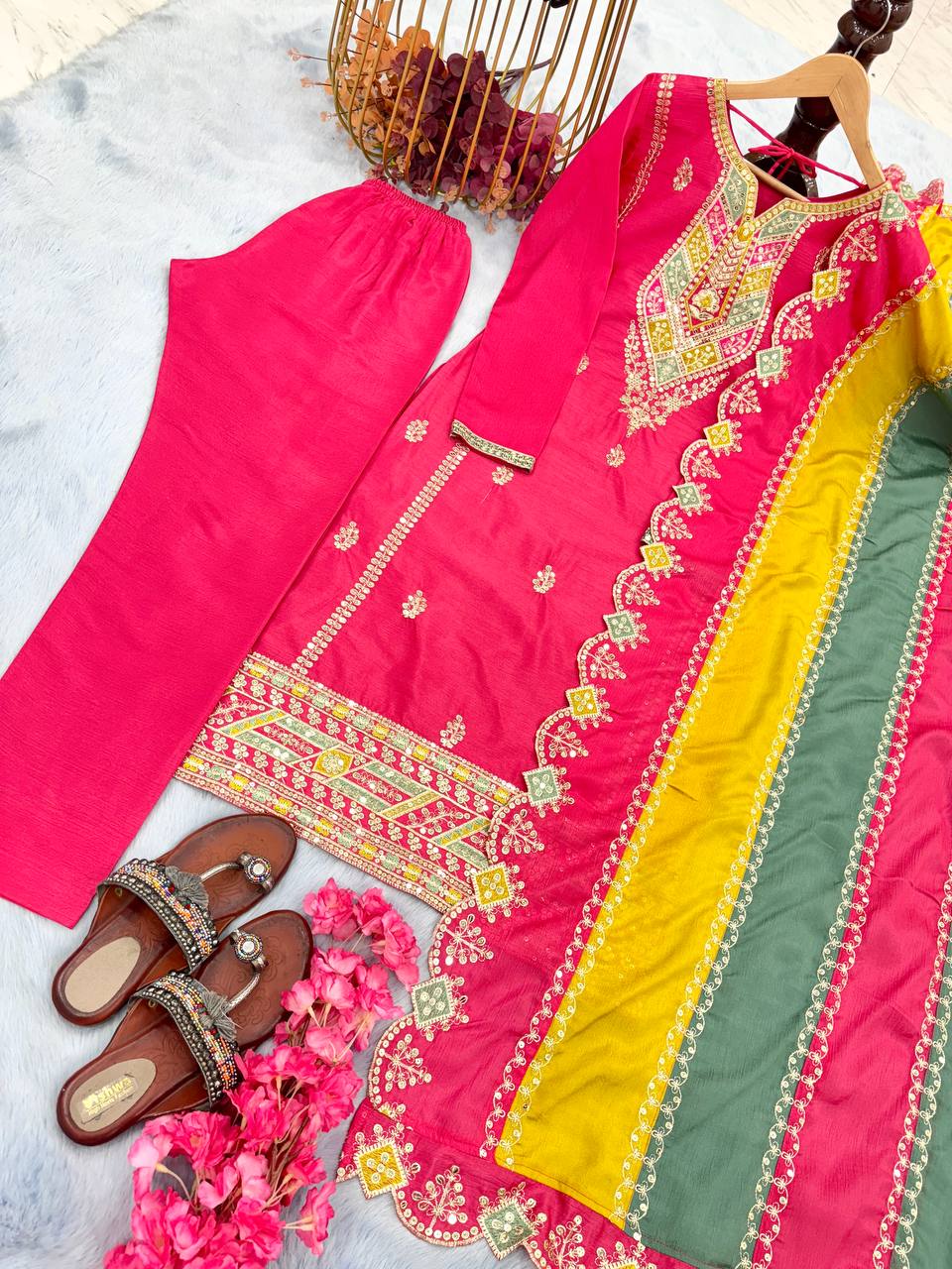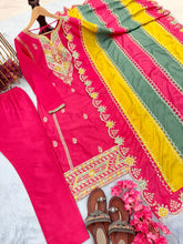 Pink Premium Designer Readymade Top, Plazzo & multi color Dupatta Set - Heavy Party Wear Collection
