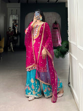 Moonga Silk Ensemble, where royal charm meets traditional craftsmanship. Designed for the modern woman who loves a touch of heritage, this three-piece set features intricate sequins and thread embroidery, exuding grace and sophistication.