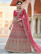 Pink Velvet Soft Net Semi Stitched Lehenga With Unstitched Blouse