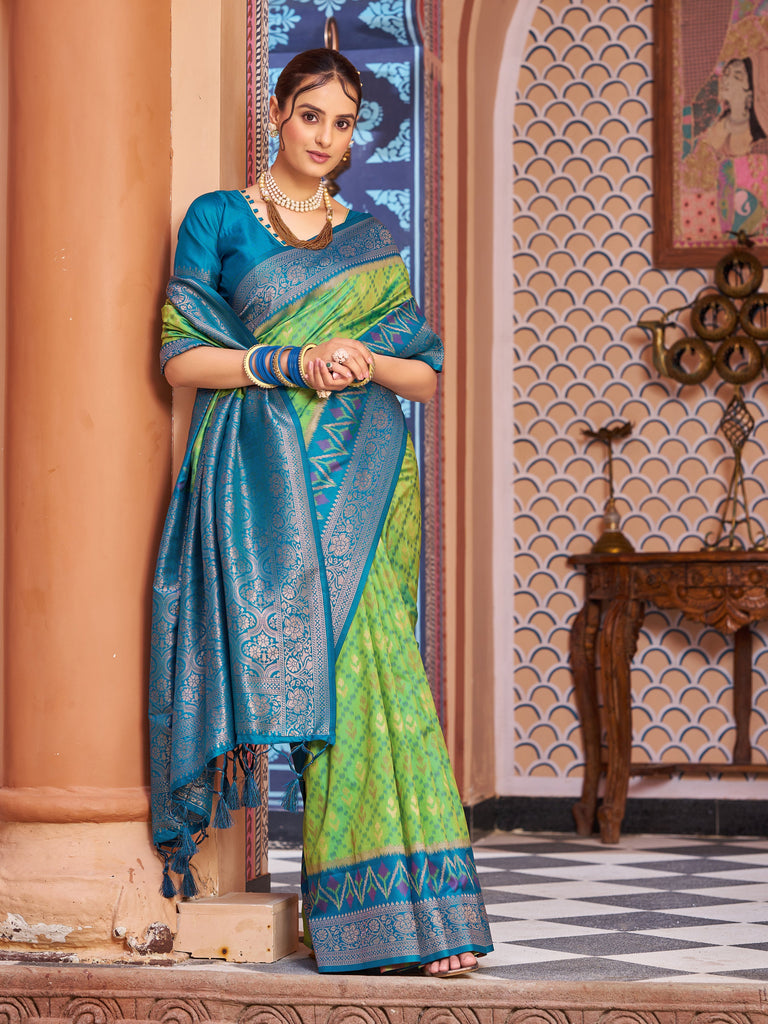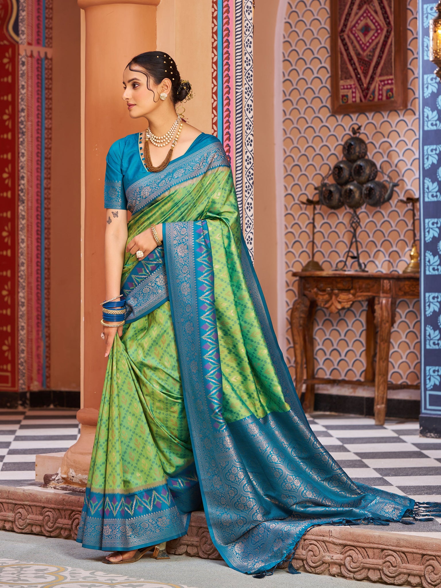 Pista Elegant Banarasi Tissue Silk Saree with Zari Woven Design