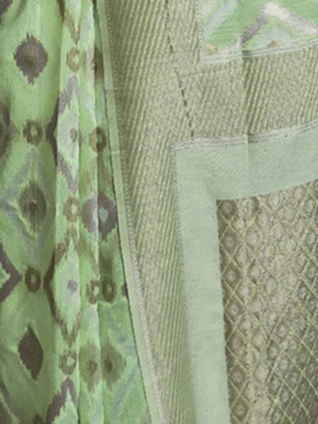 Pista Traditional Linen Banarasi Saree with Unstitched Blouse Piece