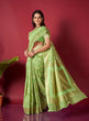 Pistachio Green Saree in Linen for women