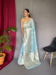 Introducing our stunning Powder Blue Saree in Cotton, perfect for any occasion. Made from pure cotton slub, this saree features all-over rose gold woven motifs that add a touch of elegance and sophistication. The minakari rose gold zari border woven pallu and rich woven pallu crafted with minakari further enhance the beauty of this saree. This saree comes paired with a jacquard blouse that complements the saree perfectly. The powder blue color of the saree is soothing to the eyes and makes it a great choice for daytime events. The cotton fabric ensures that you stay comfortable throughout the day while looking your best. Whether you're attending a wedding, a formal event, or a casual gathering, this Powder Blue Saree in Cotton is sure to make you stand out from the crowd. So, add it to your wardrobe today and get ready to turn heads wherever you go!