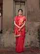 For a party or a wedding, you could pair this saree with a contrasting blouse in a complementary color, such as a gold or a deep blue, and accessorize with silver or gold jewelry. You could opt for a modern hairstyle such as loose waves or a sleek ponytail to balance out the traditional look of the saree.
