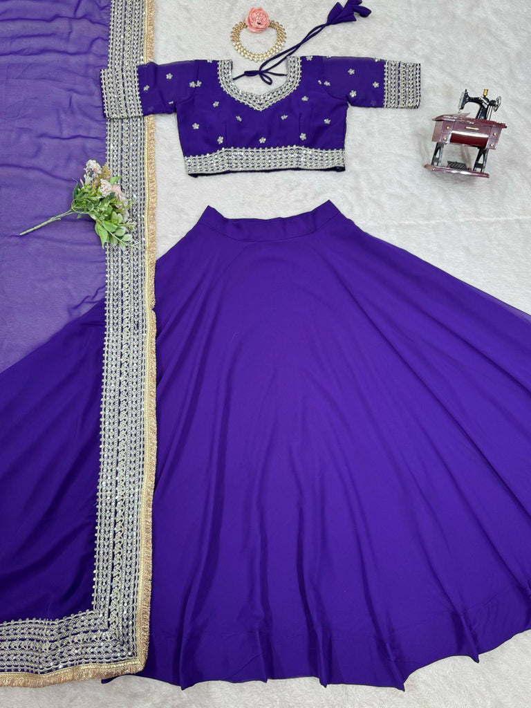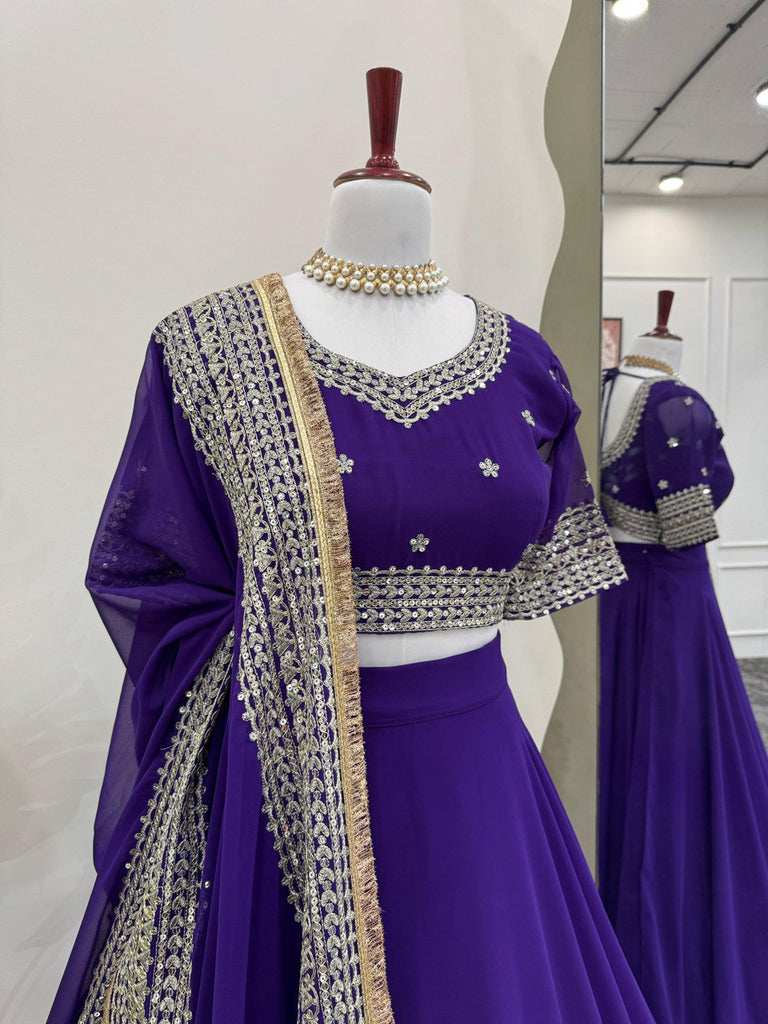Purple Designer Faux Georgette Semi-Stitched Lehenga Choli with Sequin Embroidery & Butterfly Net Dupatta