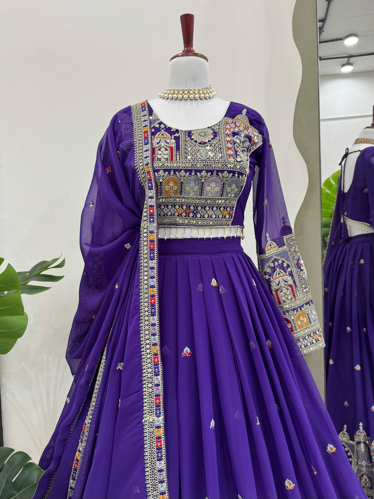 Purple Elegant Faux Georgette Lehenga Choli Set with Heavy Embroidery & Dupatta