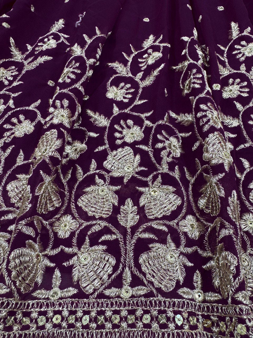 Faux Georgette Top and Plazo Set, designed for a perfect blend of elegance and comfort. The intricate thread work with sequins adds a touch of glamour, making it ideal for festive occasions, parties, or evening wear.