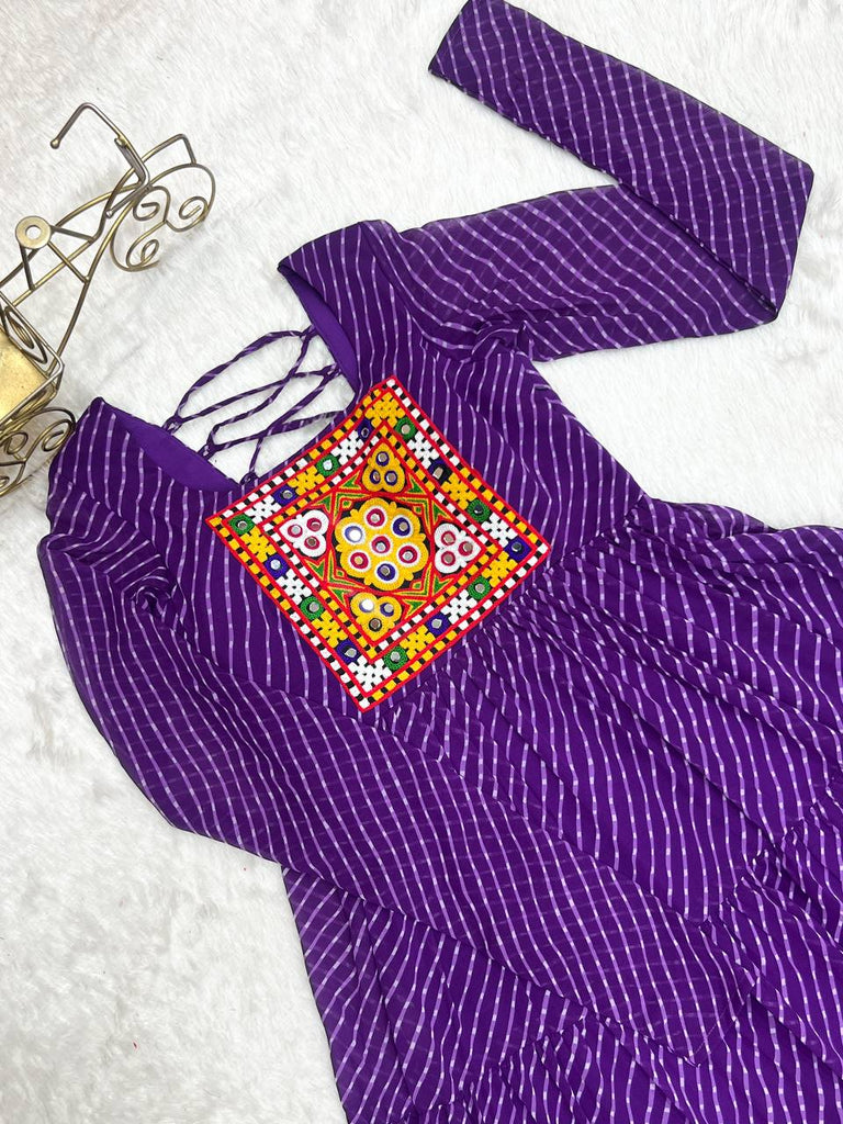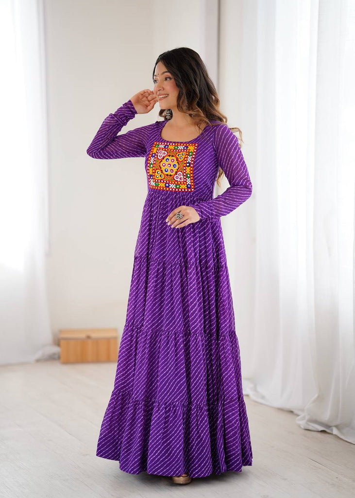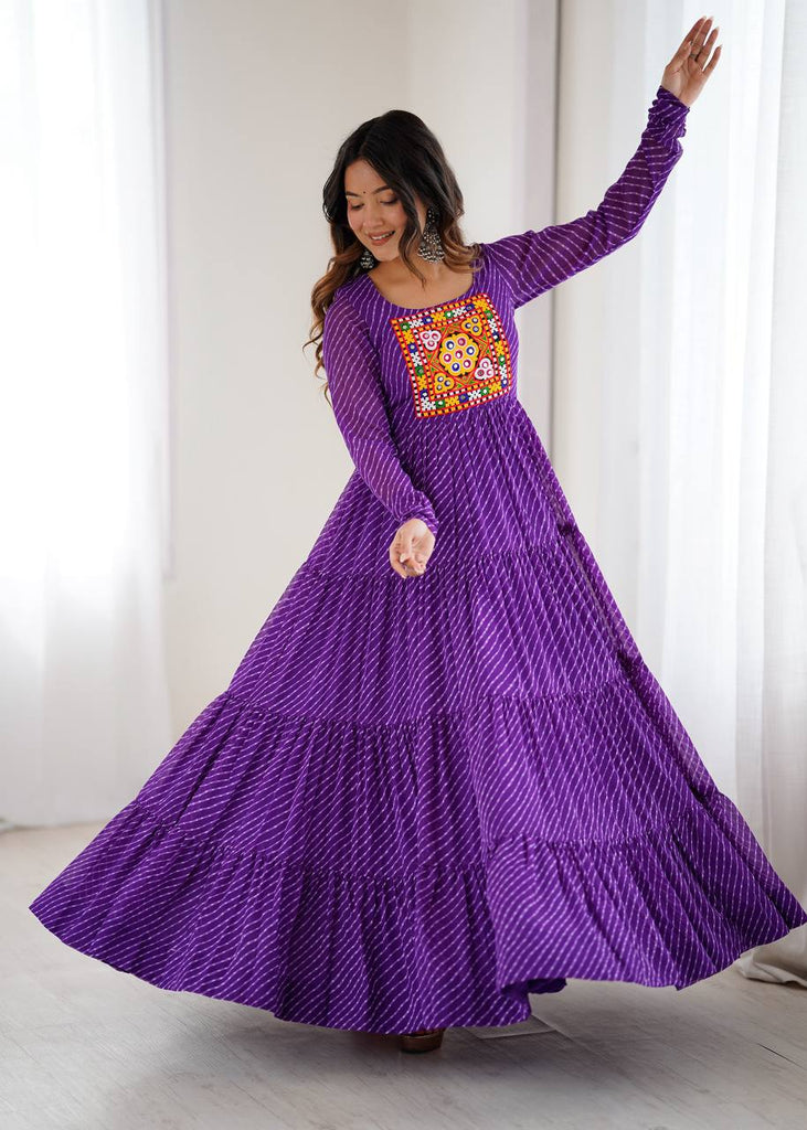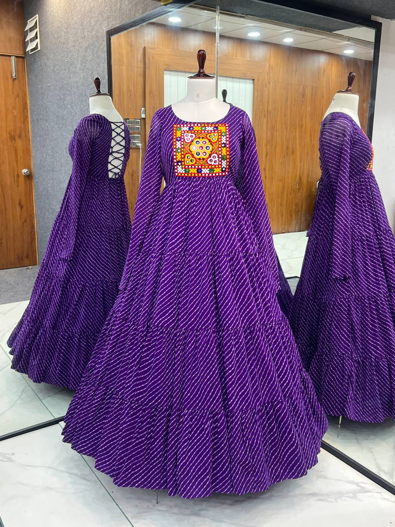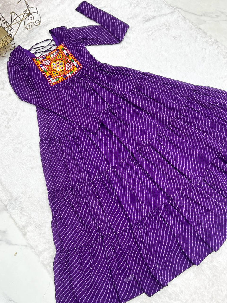 Purple Elegant Heavy Fox Georgette Laheriya Anarkali Gown with Gamthi Work