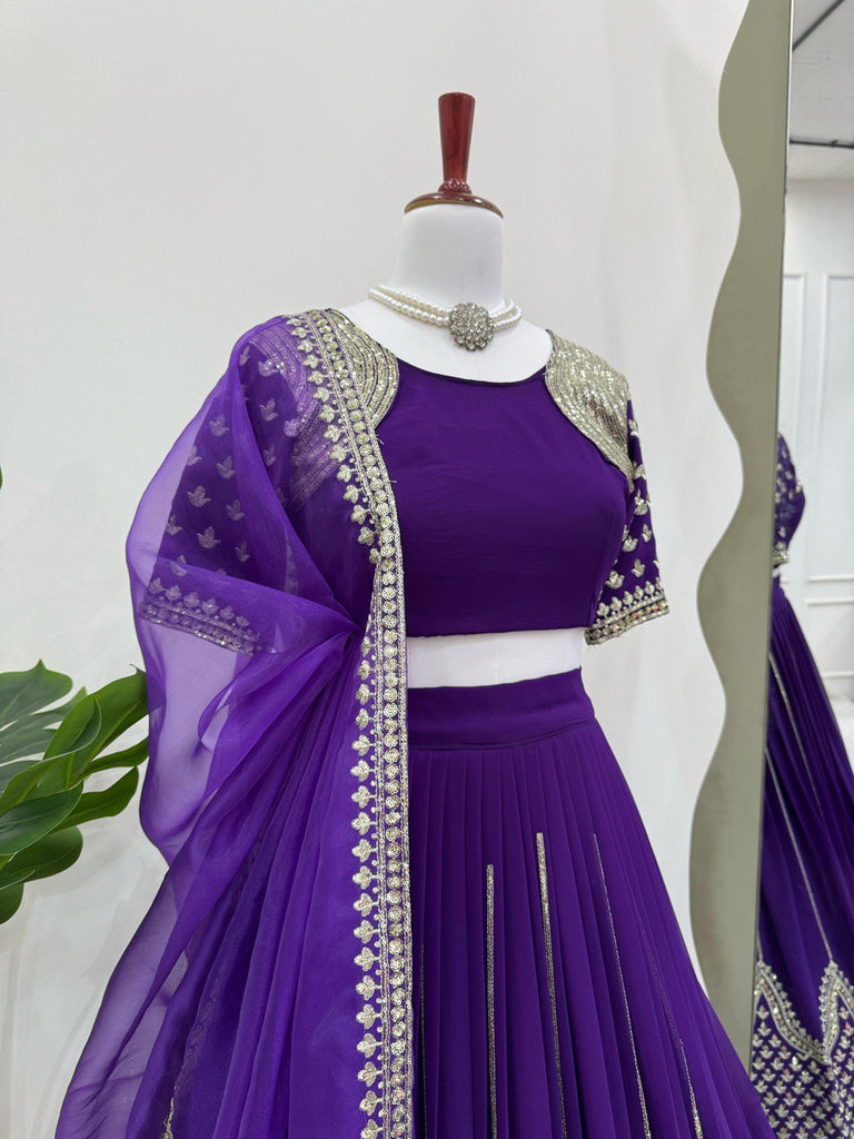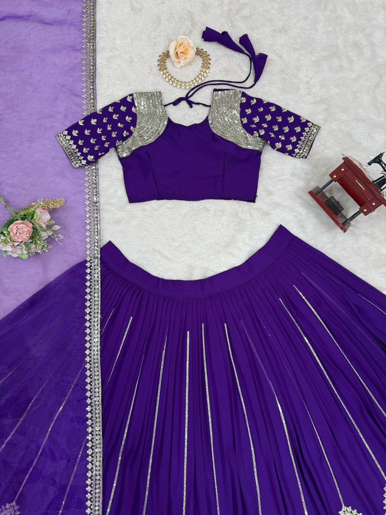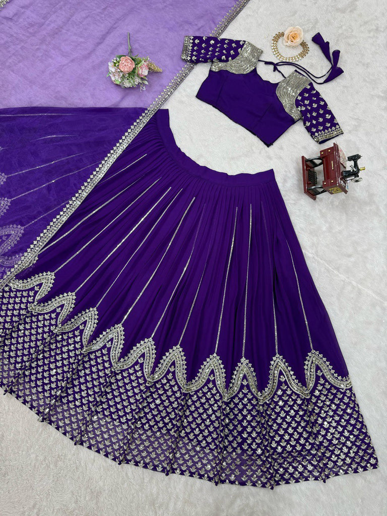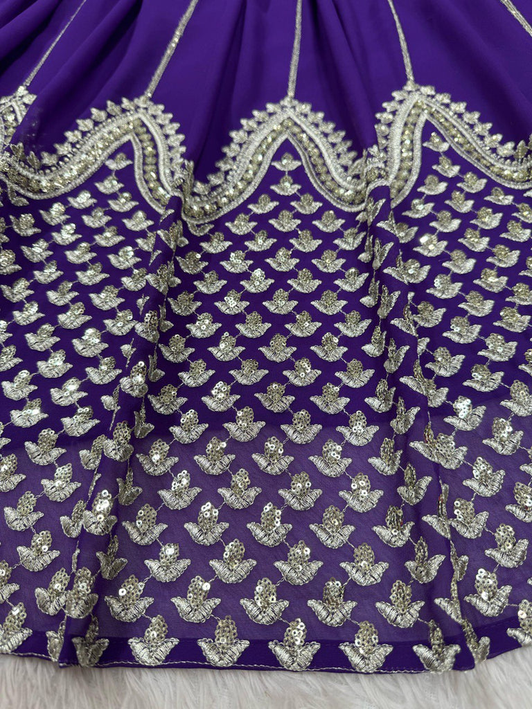Purple Graceful Faux Georgette Semi-Stitched Lehenga Choli Set with Sequin Embroidery & Dupatta
