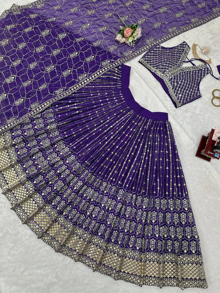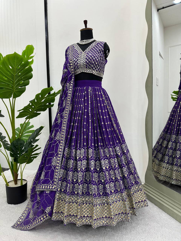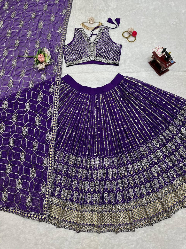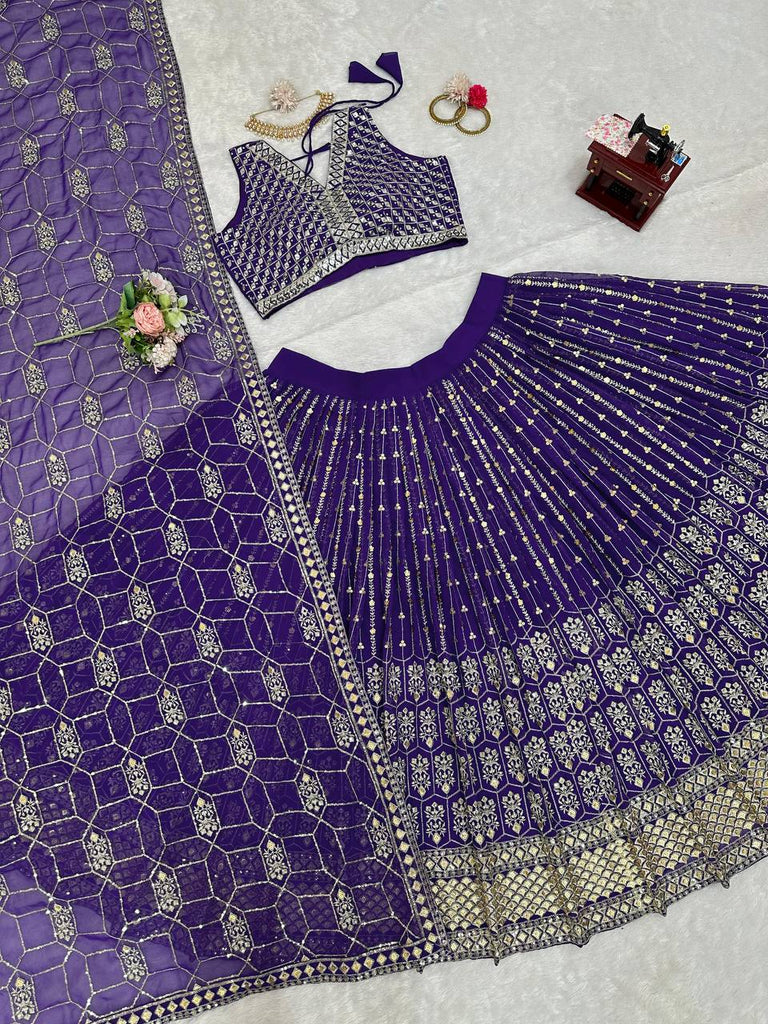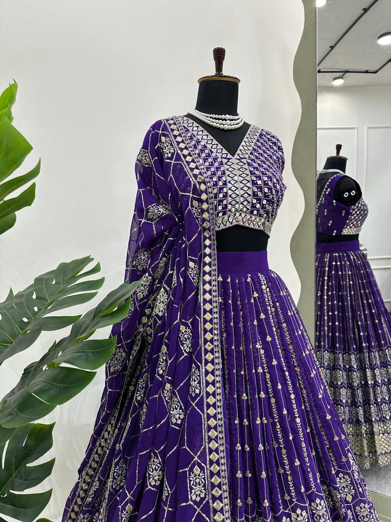 Purple Graceful Fox Georgette Semi-Stitched Lehengha Set with Thread & Sequin Work