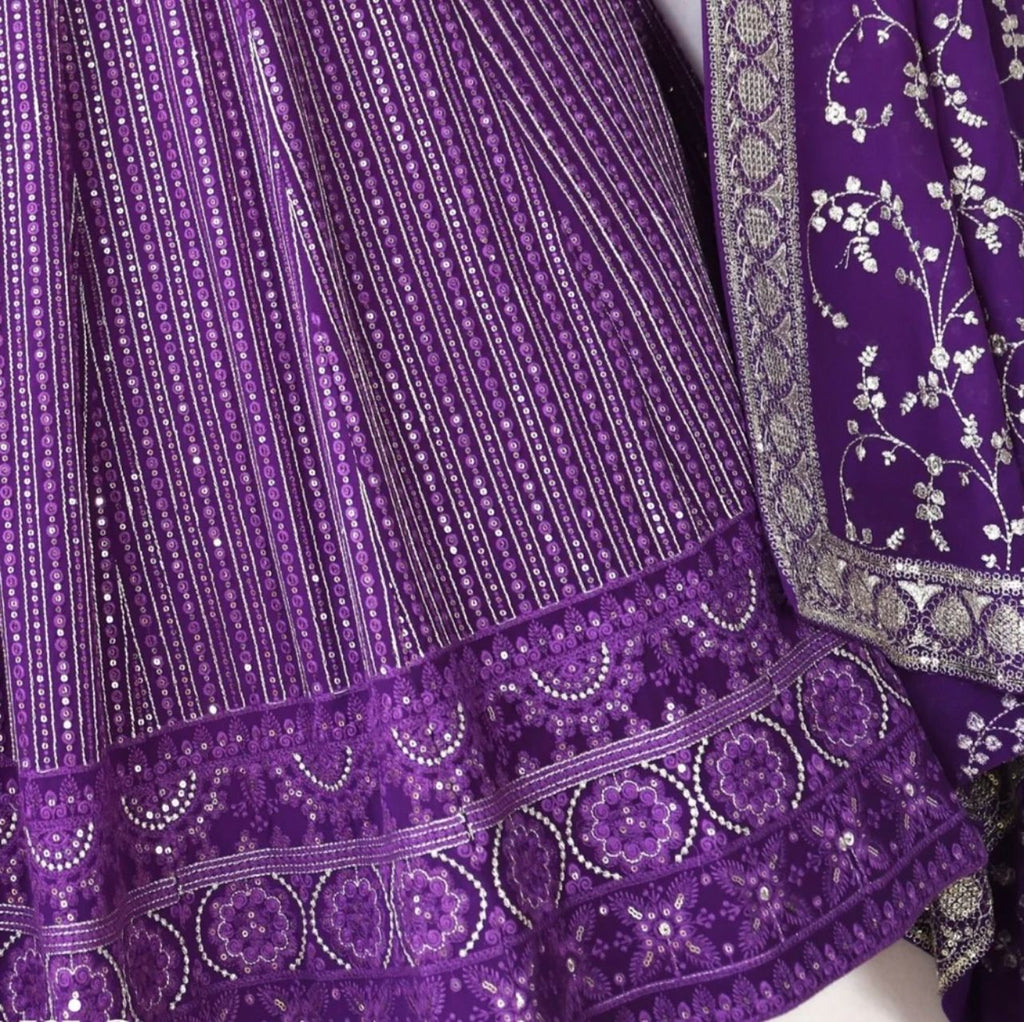 Purple Graceful Soft Georgette Lehenga with Unstitched Blouse Fabric