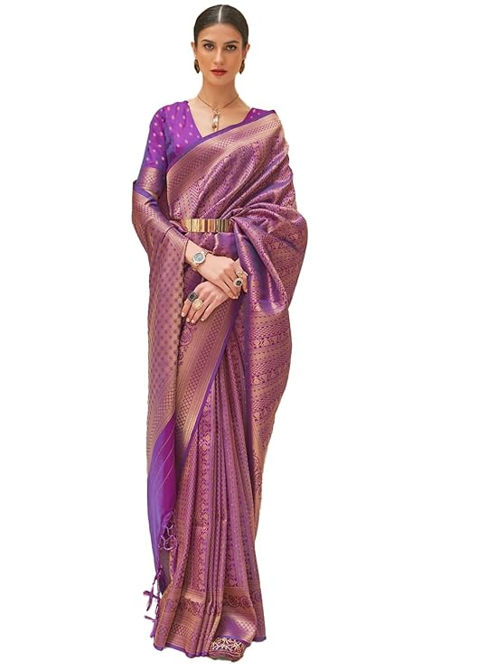 Purple Kanjivaram Silk Saree with Sequins Zari