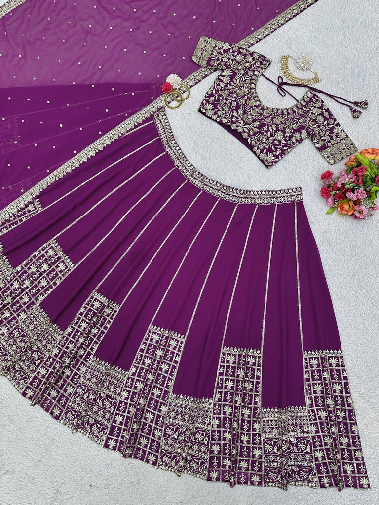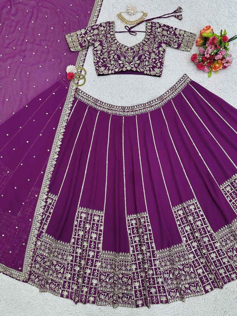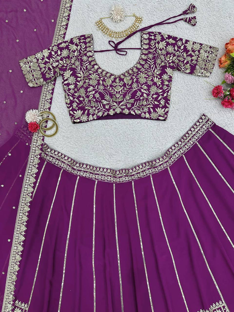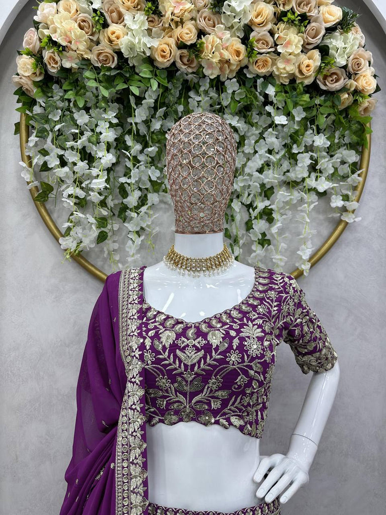 Purple Luxe Faux Georgette Semi-Stitched Lehenga Set with Thread & Sequence Work