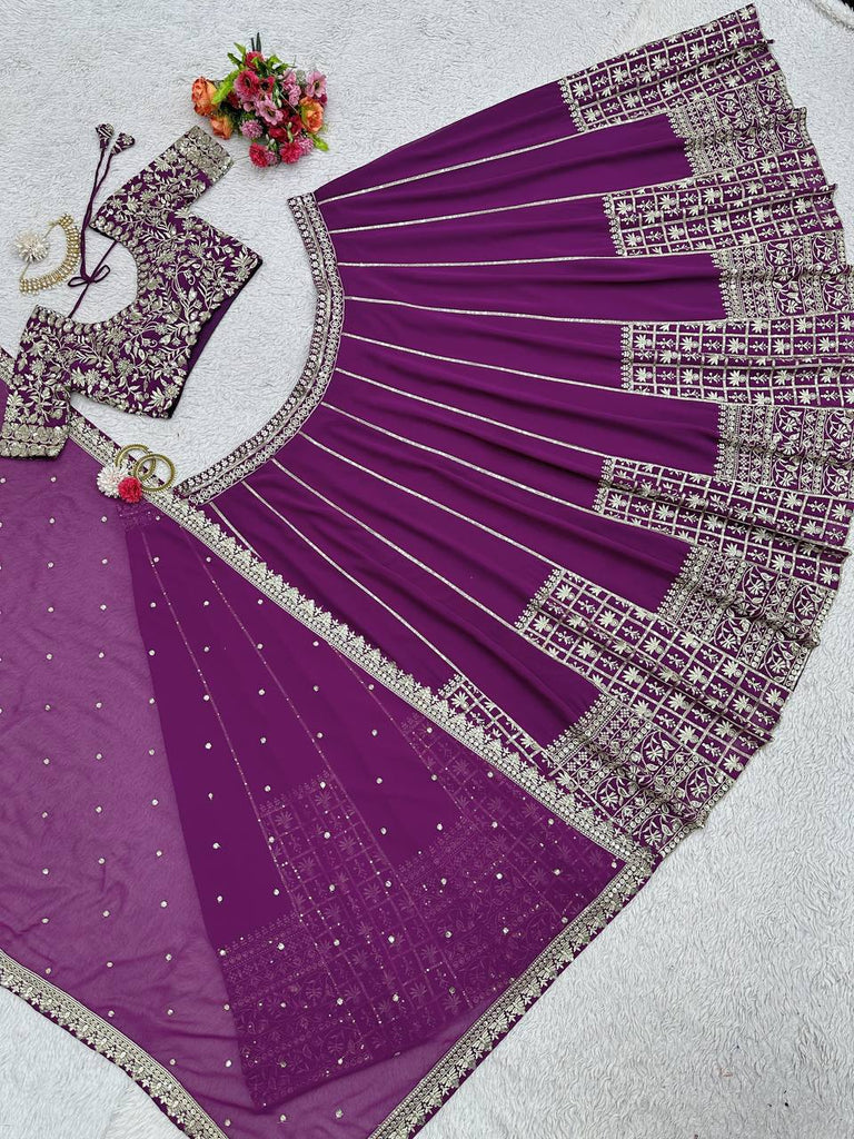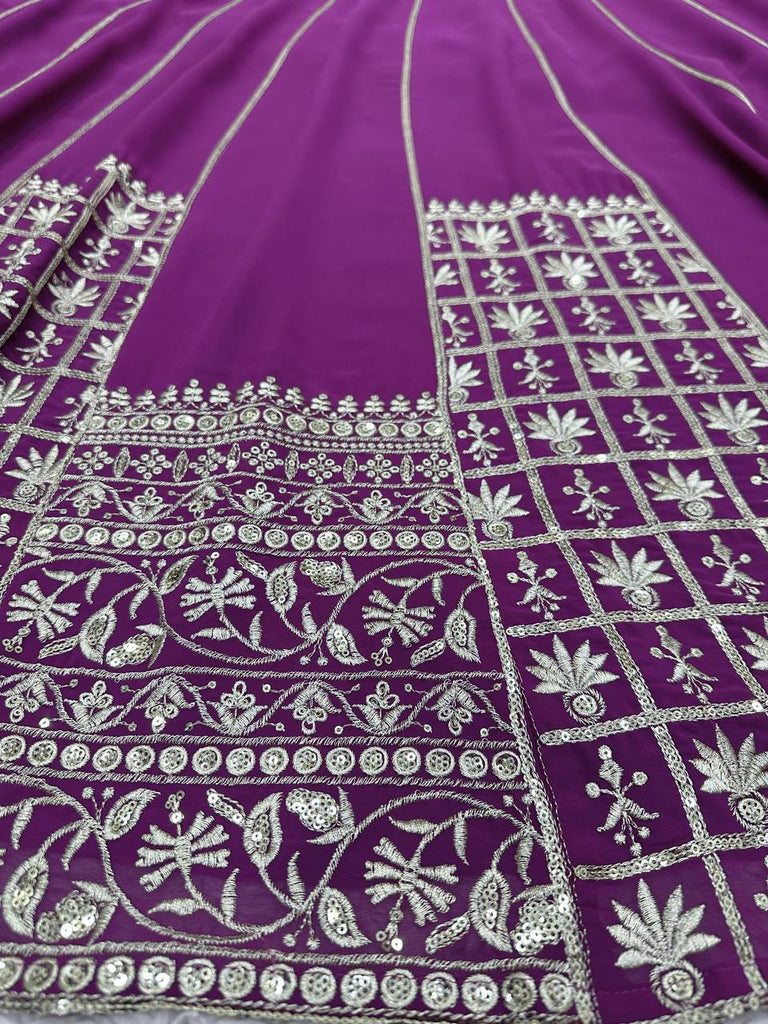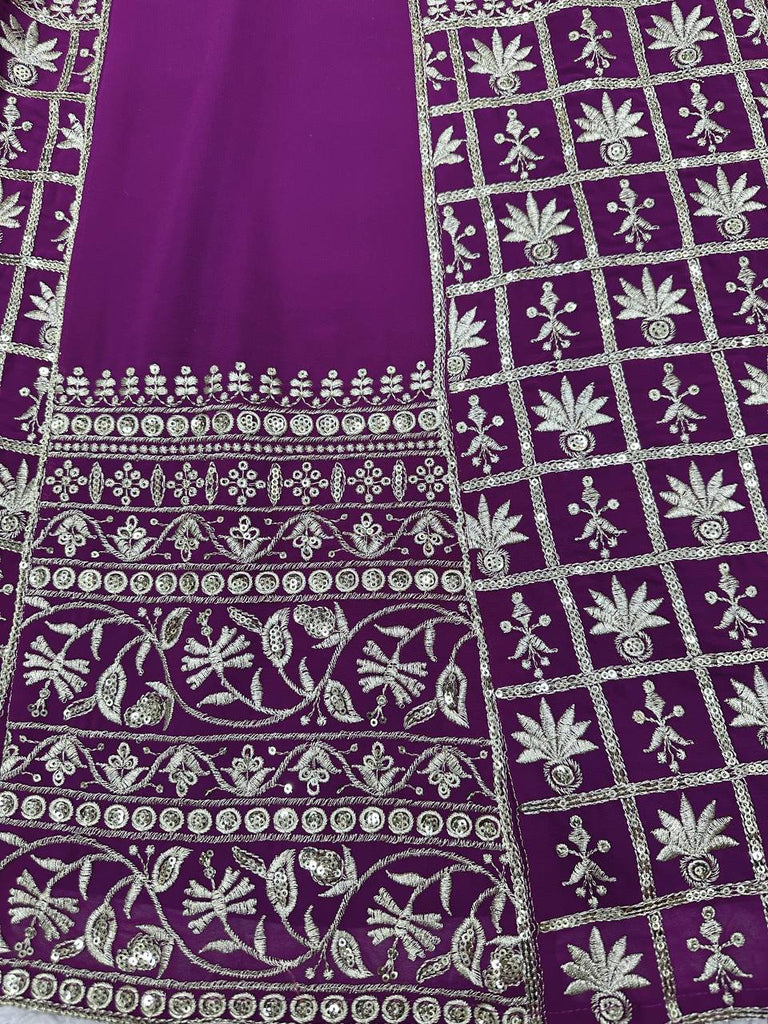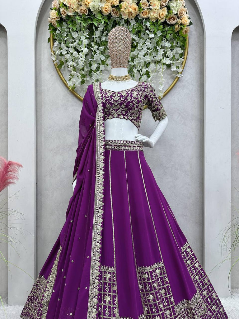 Purple Luxe Faux Georgette Semi-Stitched Lehenga Set with Thread & Sequence Work