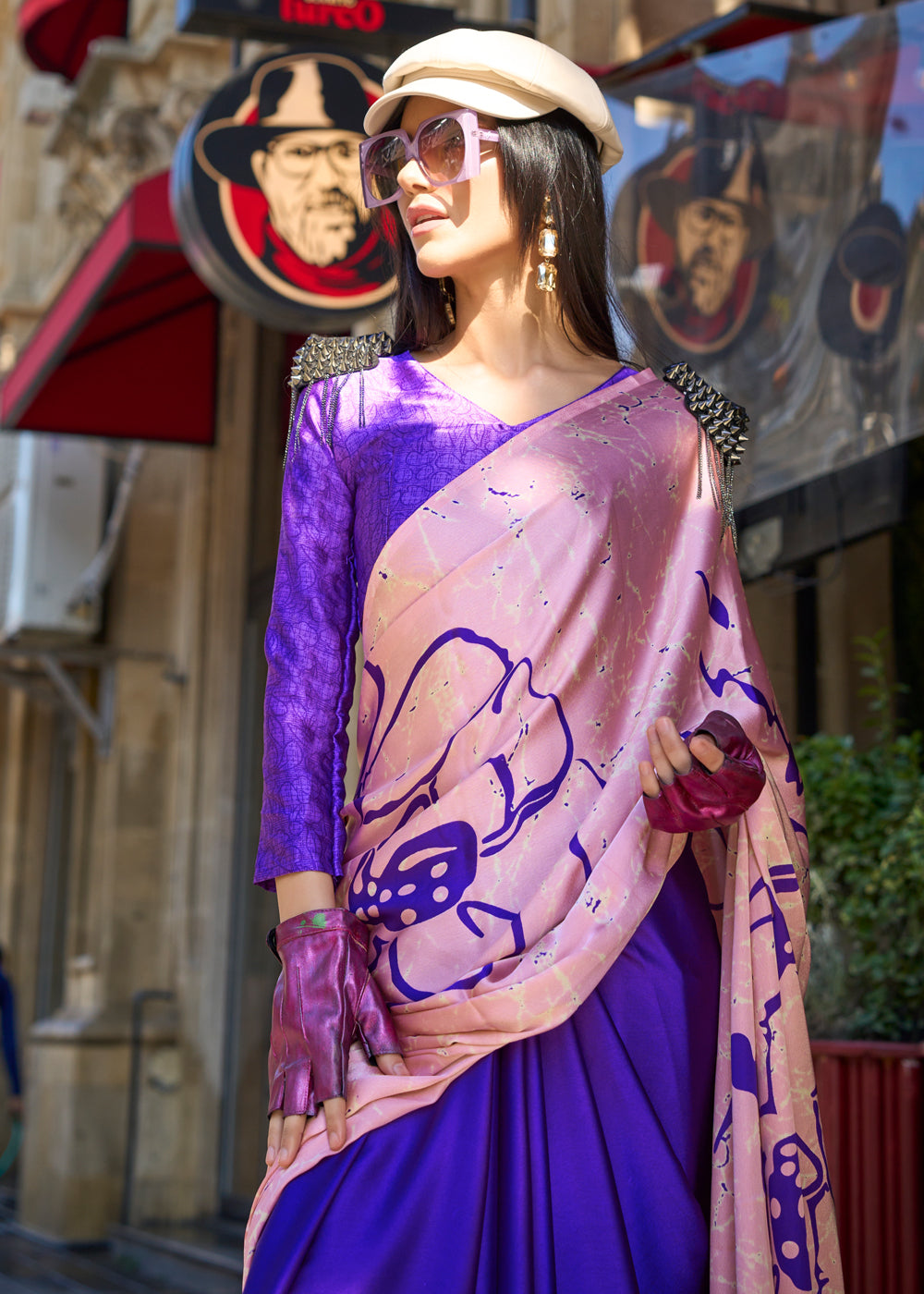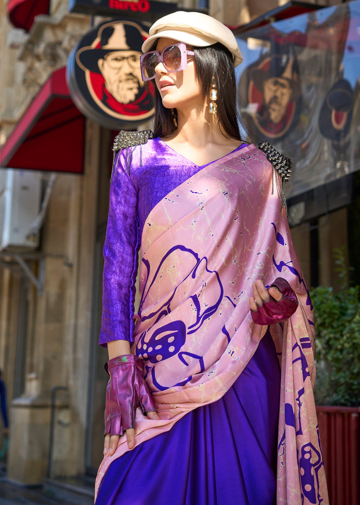 Purple Luxurious Satin Crepe Saree – Elegance with a Graceful Drape