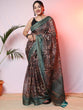 Introducing the stunning Rama Printed Saree, a masterpiece of traditional Indian craftsmanship. Made from high-quality Chanderi fabric, this saree features exquisite Pashmina Ajrakh prints all over, adding a touch of elegance and sophistication to your wardrobe. The saree is further adorned with a beautiful copper zari woven border, adding a touch of glamour and luxury to the overall look. The copper zari woven pallu with tassels adds a graceful touch to the saree, making it perfect for any occasion. The saree comes paired with a printed blouse, completing the look and making it ready to wear. Elevate your style with this gorgeous Rama Printed Saree and make a statement wherever you go.