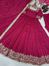 Rani Pink Party Wear Pur Vichitra Silk Anarkali Gown with Dupatta Set
