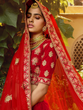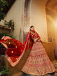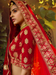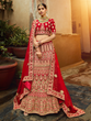 Red Embroidered Velvet Semi Stitched Lehenga With Unstitched Blouse