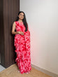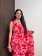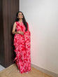 Red Faux Georgette Crushed Saree Gown with Digital Shibori Print