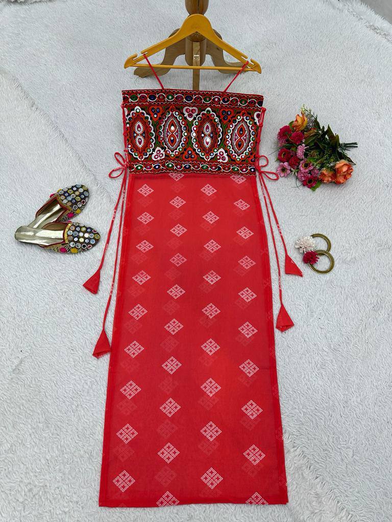Red Faux Georgette Designer Top with Chinestitch & Real Mirror Work Dori Tie-Up Padded