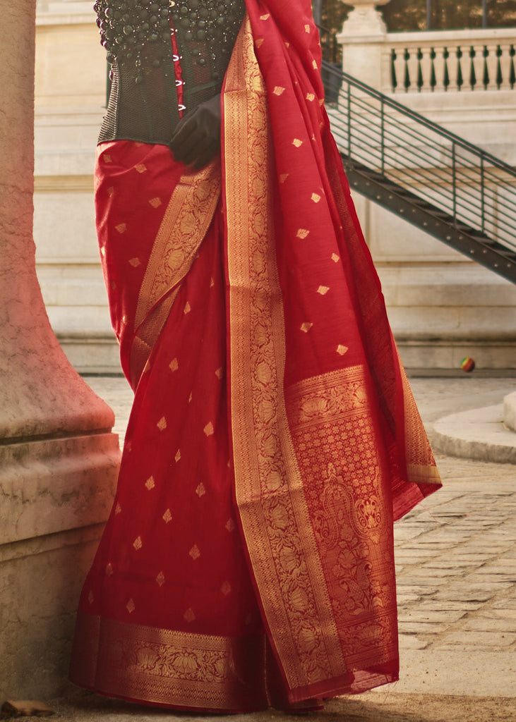 Red Regal Banarasi Blended Silk Saree with Intricate Timeless Design & Unstitched Blouse